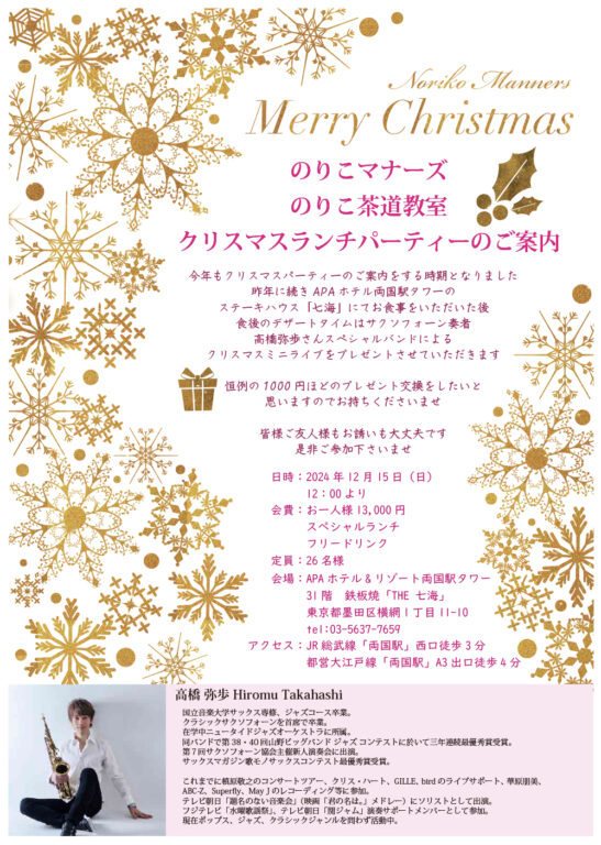 のりこ茶道教室クリスマスランチパーティーのご案内
