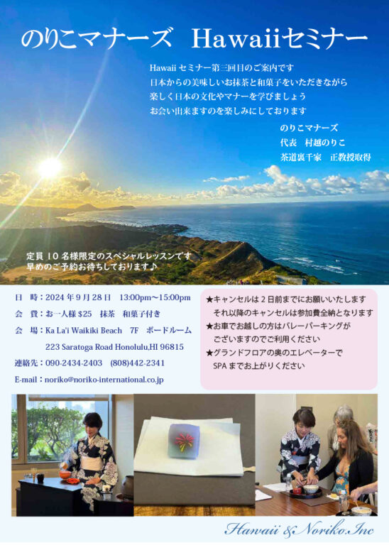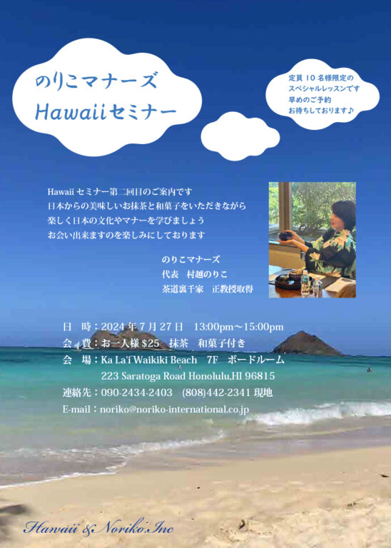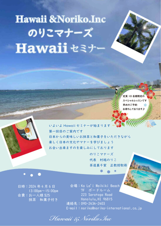 Hawaii&Noriko,incのりこマナーズHawaiiセミナー