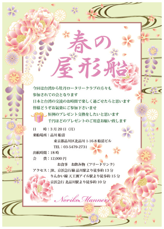 のりこ茶道教室 2025 年新春開運お食事会のご案内