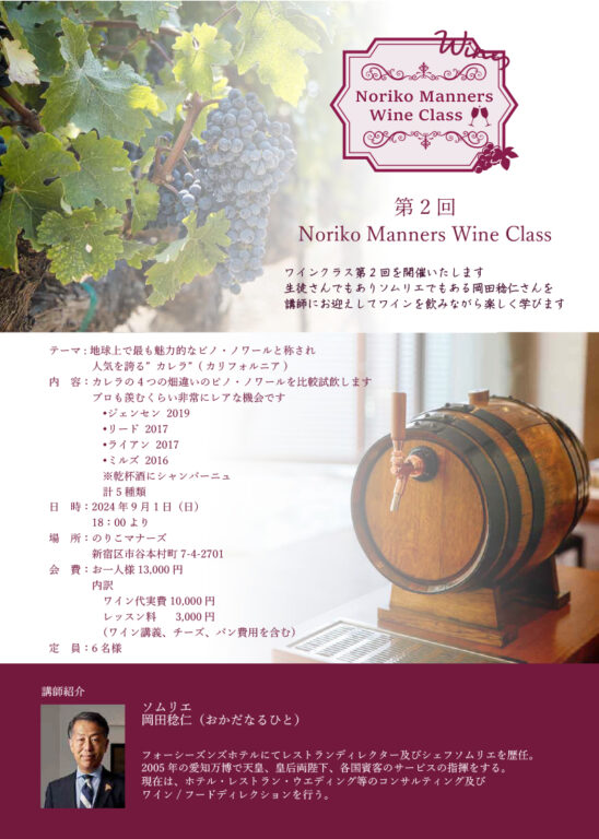 ワインクラス第2回「地球上で最も魅力的なピノ・ノワールと称され人気を誇る” カレラ” ( カリフォルニア)」