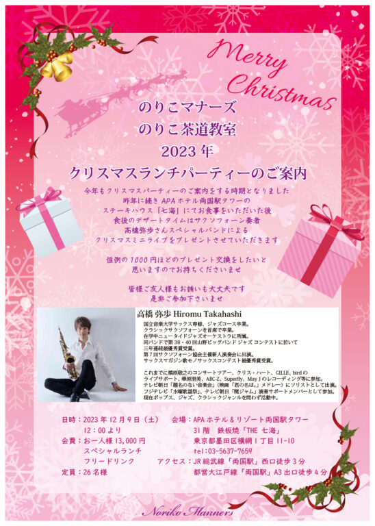 のりこマナーズのりこ茶道教室クリスマスパーティ